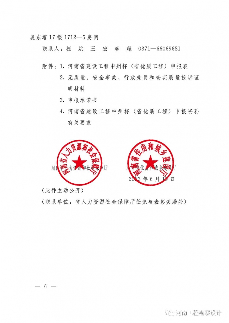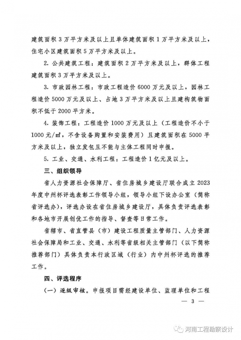 河南省人力资源和社会保障厅 河南省住房和城乡建设厅关于开展2023年度 河南省建设工程中州杯(省优质工程) 评选工作的通知
