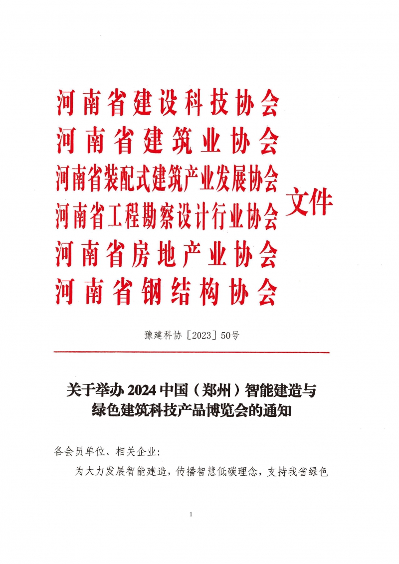 关于举办2024中国(郑州)智能建造与绿色建筑科技产品博览会的通知