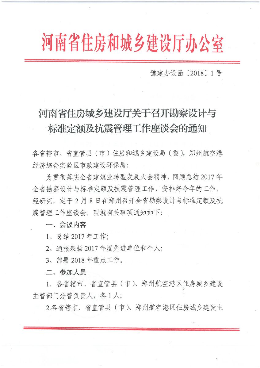 省住建厅关于召开勘察设计与标准定额及抗震管理工作座谈会的通知