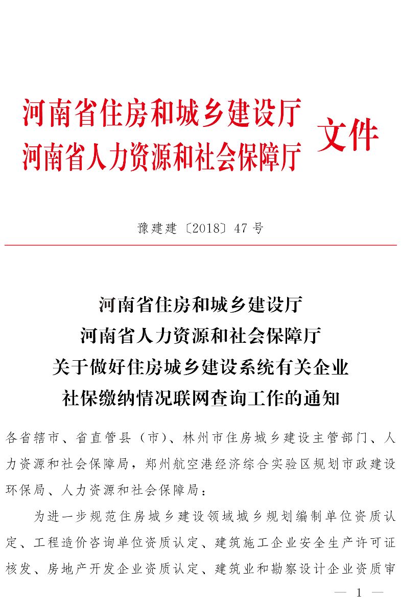 河南省住房和城乡建设厅河南省人力资源和社会保障厅关于做好住房城乡建设系统有关企业社保缴纳情况联网查询工作的通知